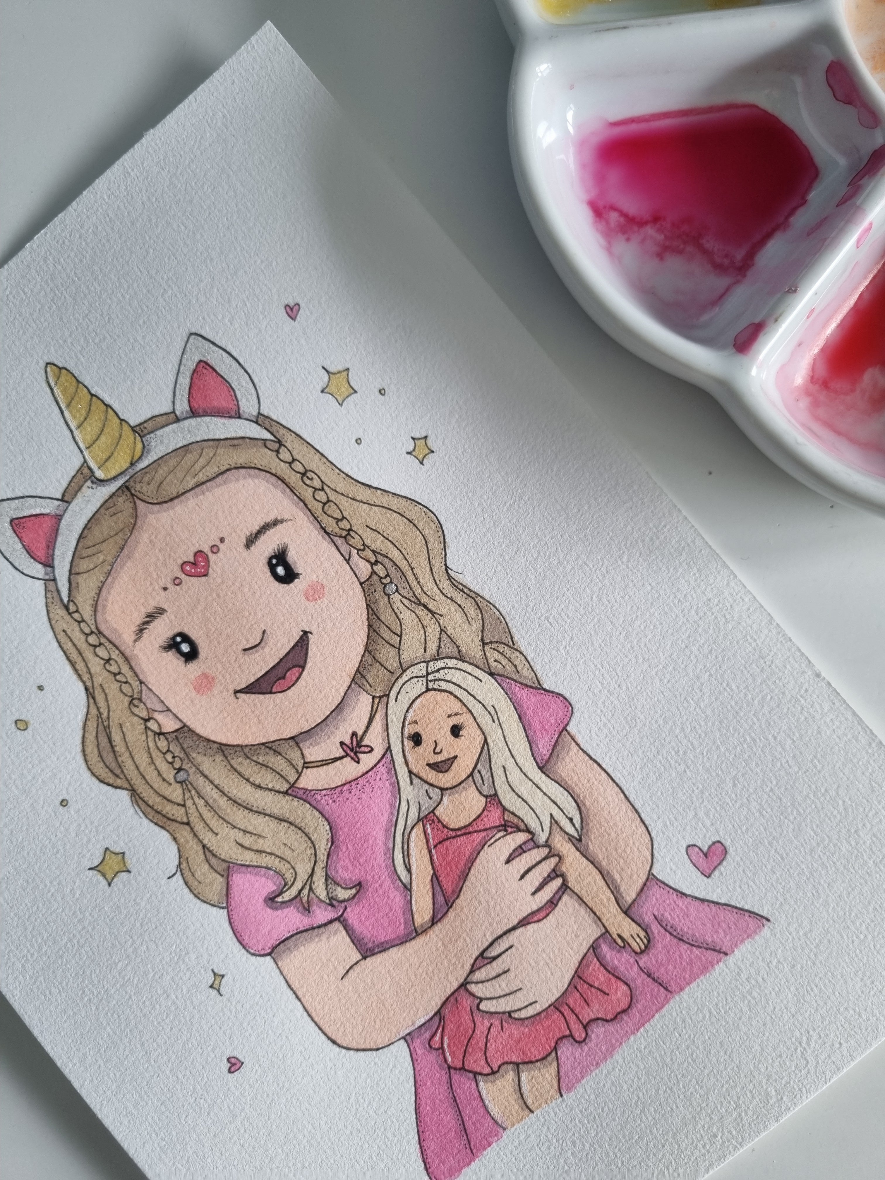 Every portrait is carefully illustrated and painted by hand. A slow, thoughtful process that turns your child’s personality into something truly special.