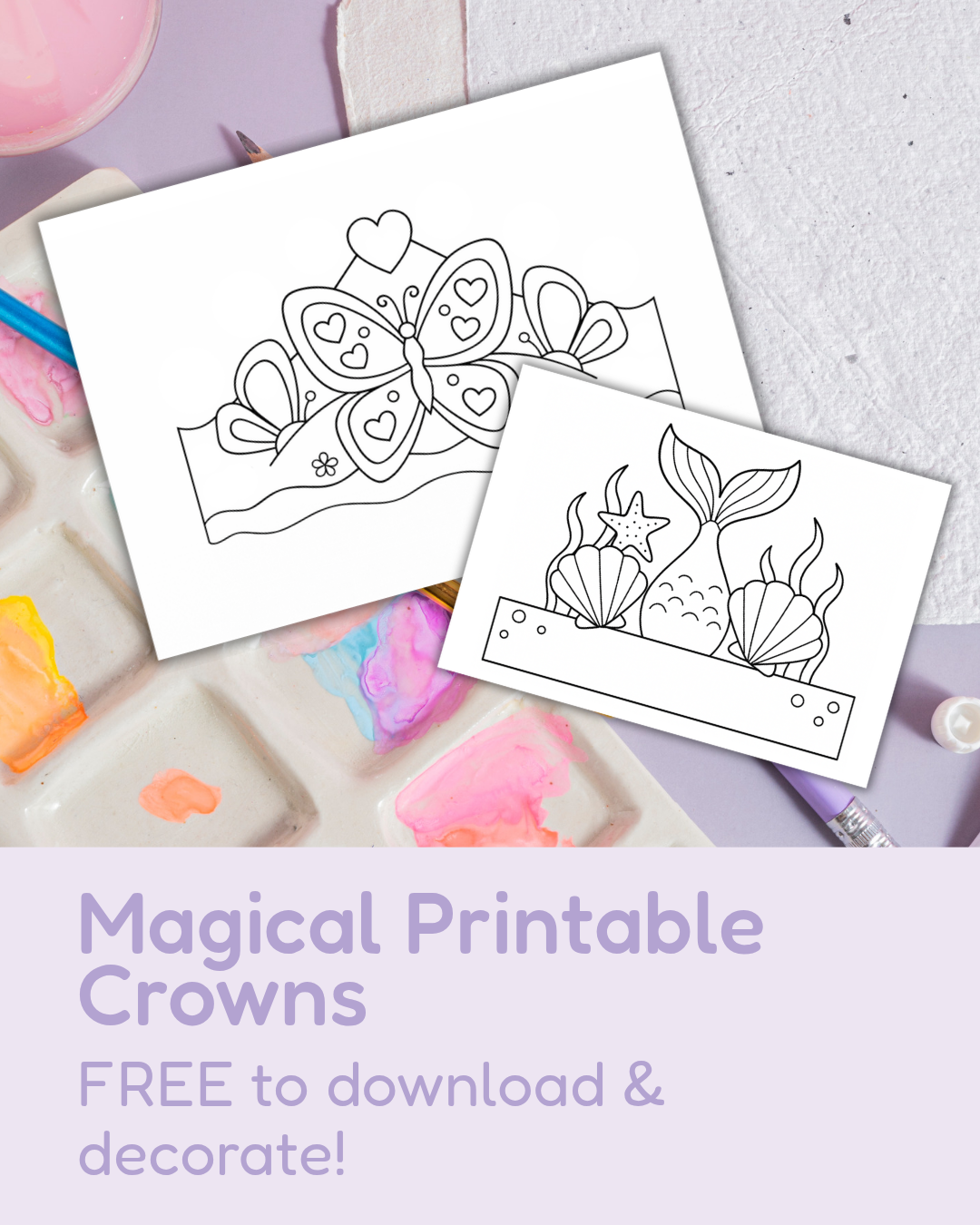 Our printable crown collection is finally here, featuring butterfly, unicorn and mermaid designs to colour, cut and wear!